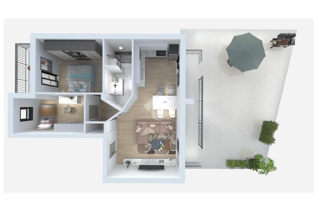L'appartamento dispone di un balcone. Completano la proprietà un box auto con soppalco e un giardino privato, perfetto per chi cerca uno spazio esterno esclusivo. L'impianto di climatizzazione e il sistema di domotica garantiscono comfort e praticità. Una soluzione abitativa che unisce modernità e tranquillità.